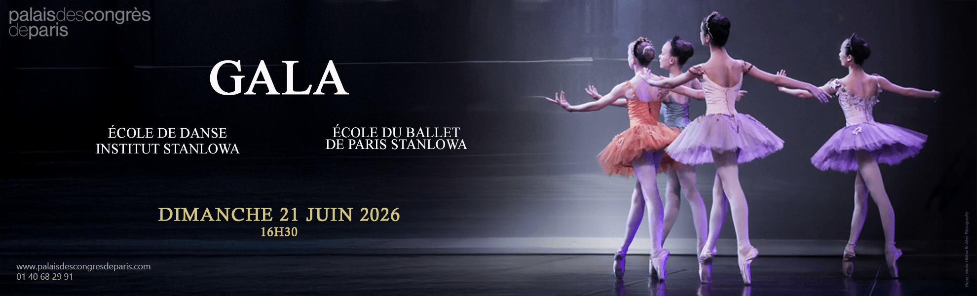 Le GALA DE DANSE DE L'ECOLE STANLOWA se tiendra le Dimanche 21 Juin 2026 à 16h30 au PALAIS DES CONGRES DE PARIS.