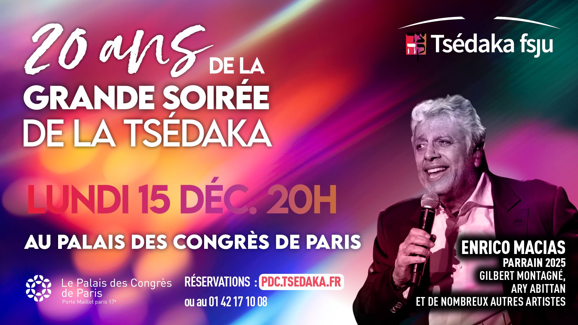 Venez fêter avec nous les 20 ans de la Grande Soirée de la Tsedaka avec notre parrain Enrico Macias et bien d’autres surprises …